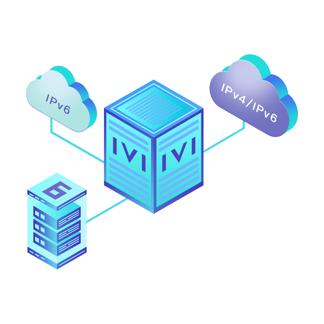 對正在進行IPv6整體升級規(guī)劃的運營商,應用IPv6升級方案2.5,通過IVI無狀態(tài)翻譯技術和純IPv6接入網(wǎng)絡,為雙棧客戶端和雙棧服務器提供連通服務。